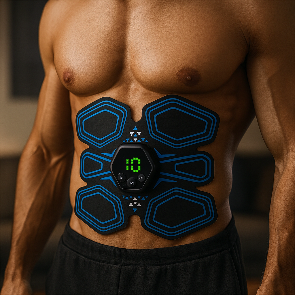 EMS abs stimulator that works quietly in the background while you live your life.